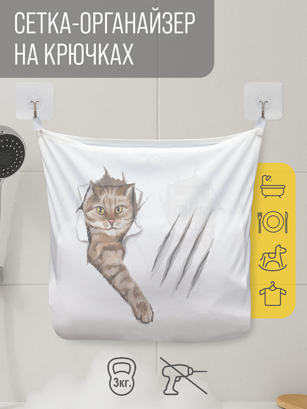 Сетка для игрушек в ванную "Озорной кот" органайзер для хранения, крючки, 33x39 см, JoyArty информация: