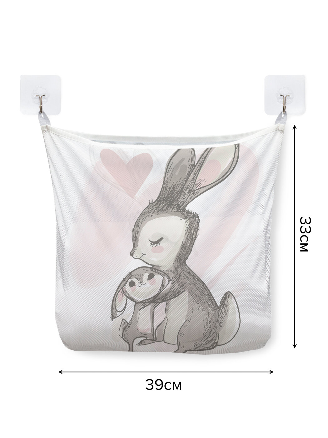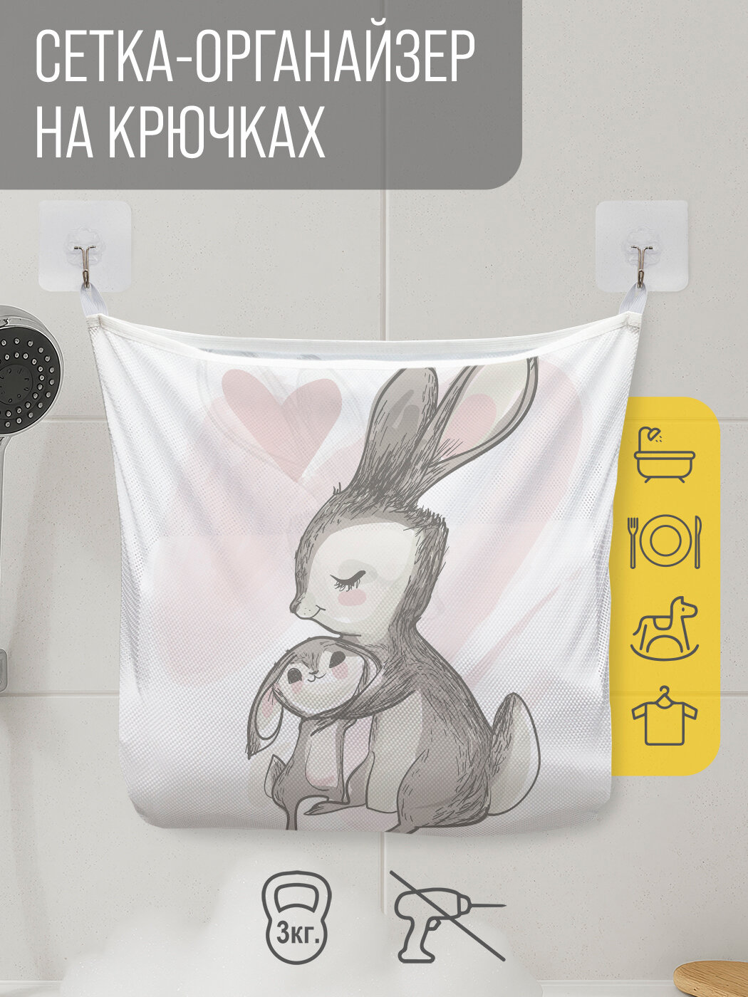 Сетка для игрушек в ванную "Зайчиха с зайчиком" органайзер для хранения, крючки, 33x39 см, JoyArty информация: