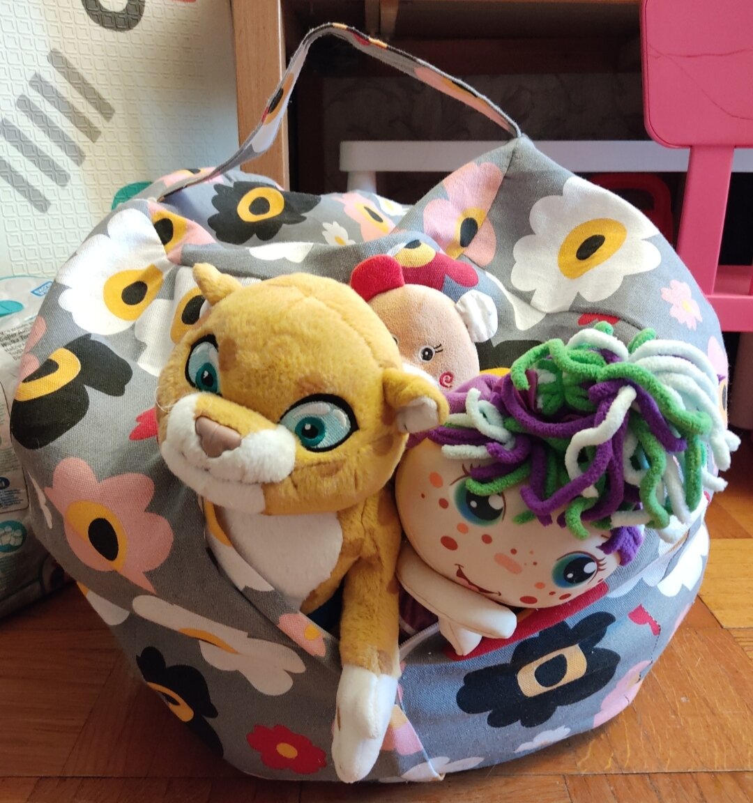 Отзывы на Сумка чехол пуфик для хранения мягких игрушек, диаметр 45 см. Цветы