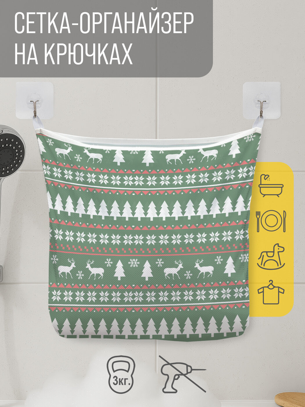 Сетка для игрушек в ванную "Олени в лесу" органайзер для хранения, крючки, 33x39 см, JoyArty, серия Новый год информация: