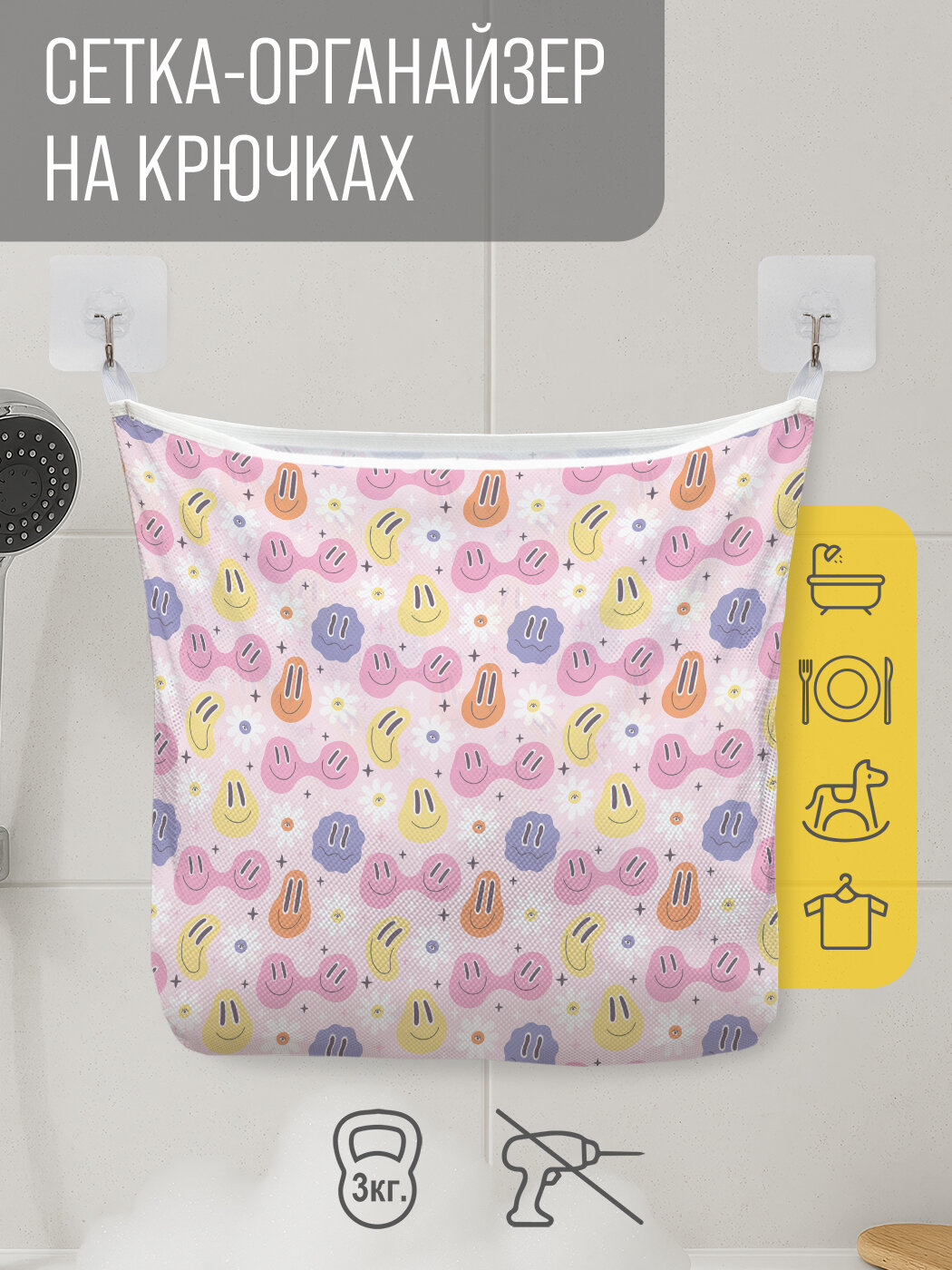 Отзывы на Сетка для игрушек в ванную "Эмоции смайлов" органайзер для хранения, крючки, 33x39 см, JoyArty
