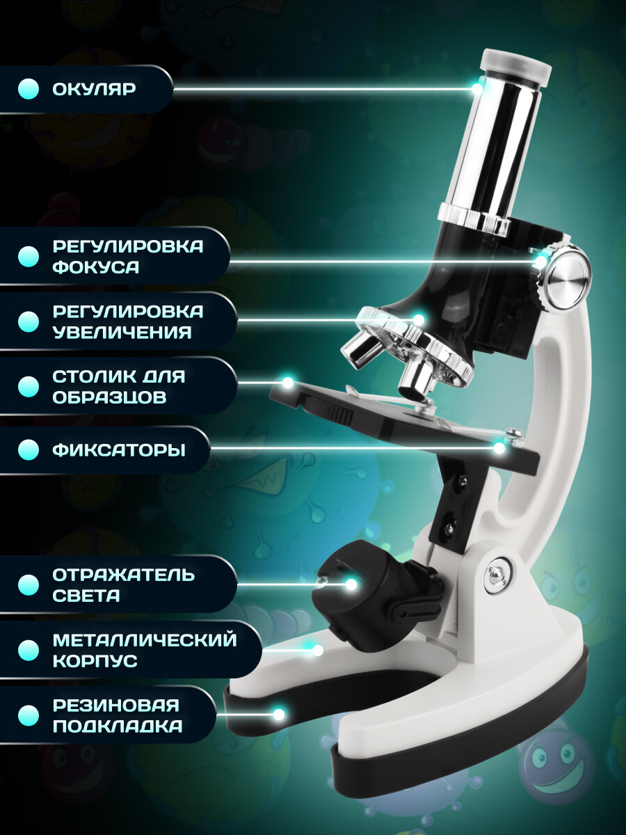 Микроскоп для детей, набор для опытов с подставкой, 3 режима информация: