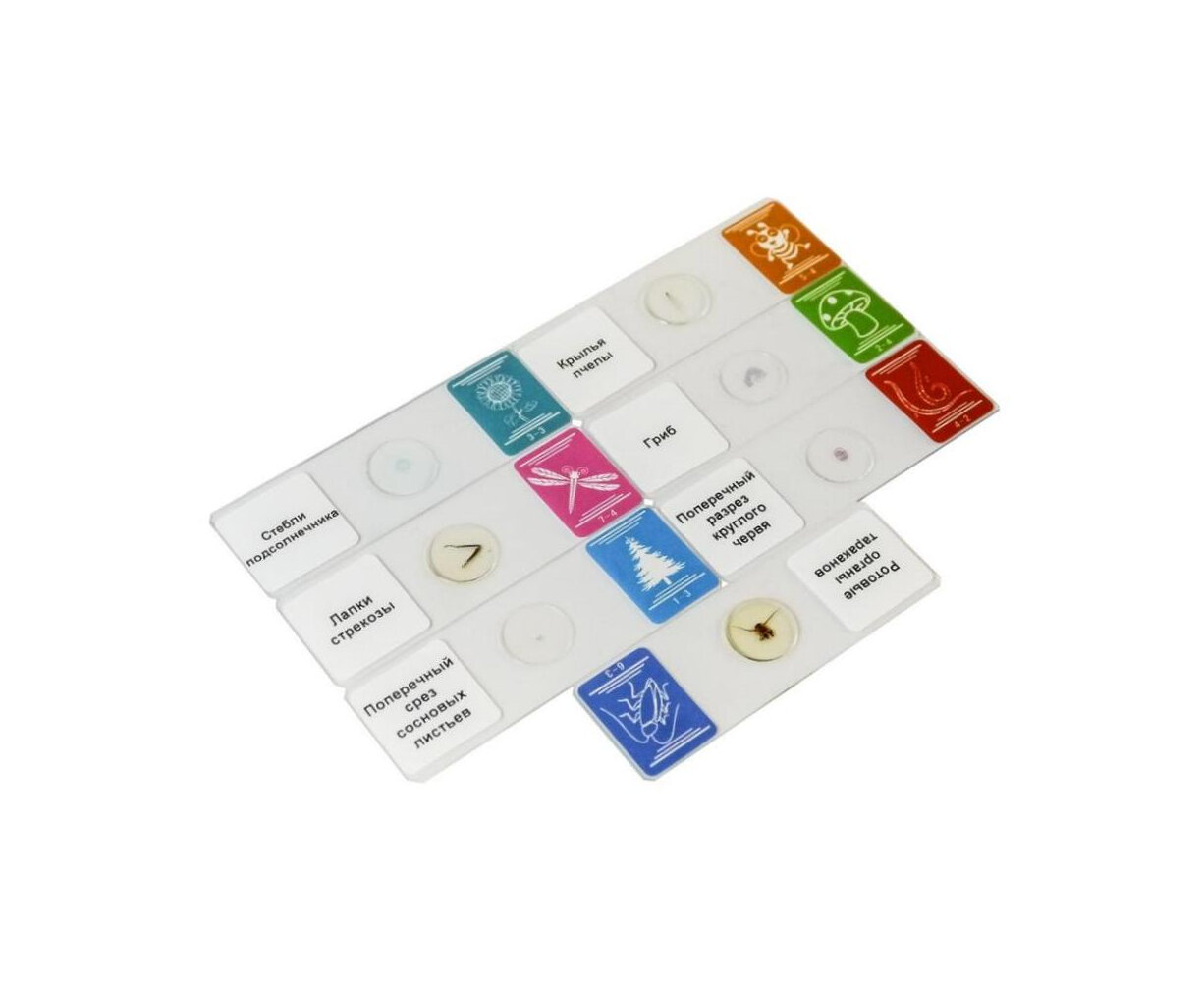 10 цен на Набор микропрепаратов на русском языке 35 шт. биология, анатомия и ботаника для микроскопа. Стекло.