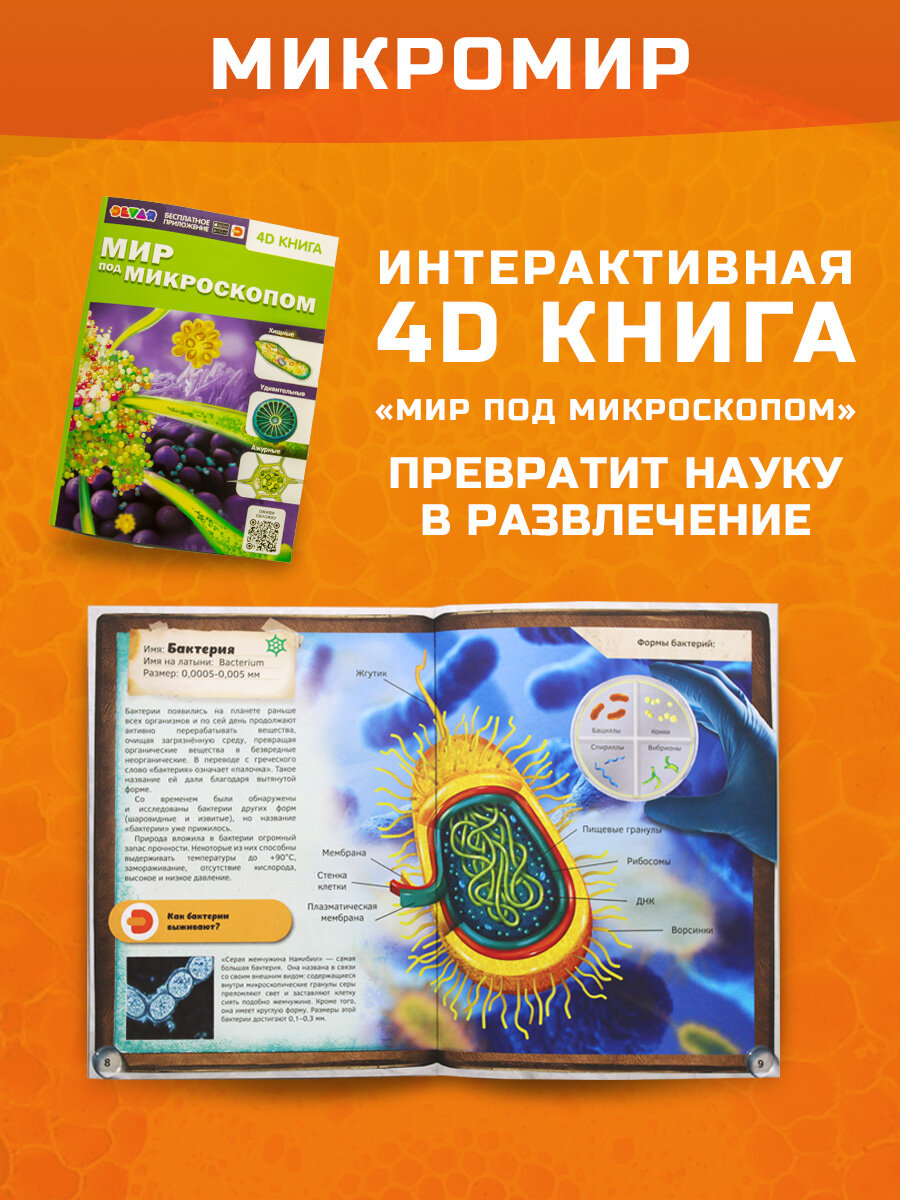 10 цен на Микроскоп Микромед Эврика 40х-640х (зеркало, LED) с препаратами Ботаника, Анатомия и 4D книгой