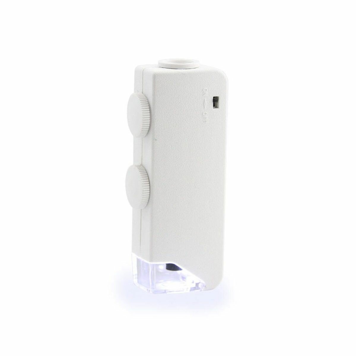 10 цен на Мини-микроскоп 160х-200х, LED подсветка, футляр, трёх линзовая оптическая система. Встроенный светодиодный
