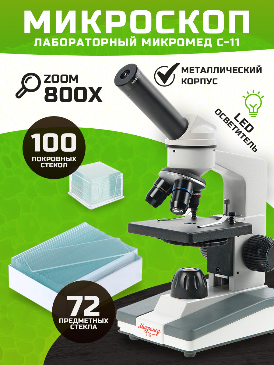 10 цен на Микроскоп Микромед "C-11" 80x-800x, с набором предметных и покровных стекл