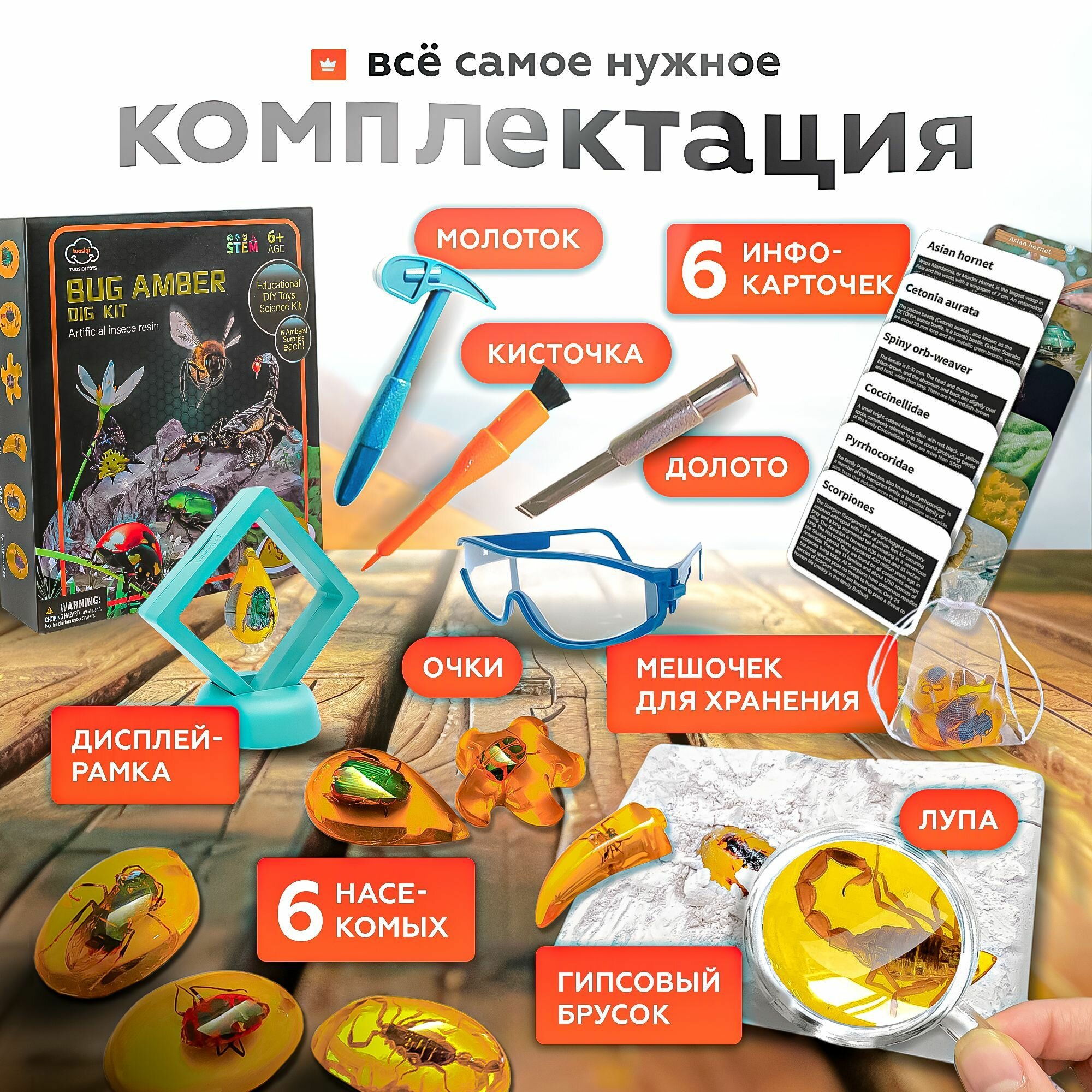Отзывы на Археологический набор SHARKTOYS "Насекомые в Янтаре", раскопки, опыты и исследования