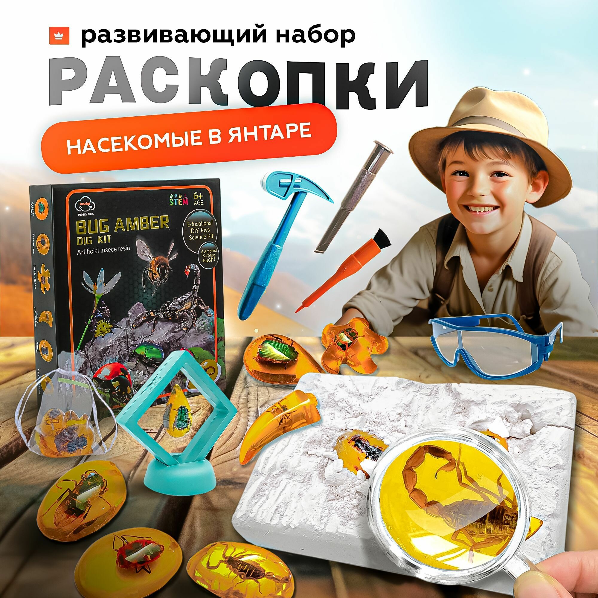 10 цен на Археологический набор SHARKTOYS "Насекомые в Янтаре", раскопки, опыты и исследования