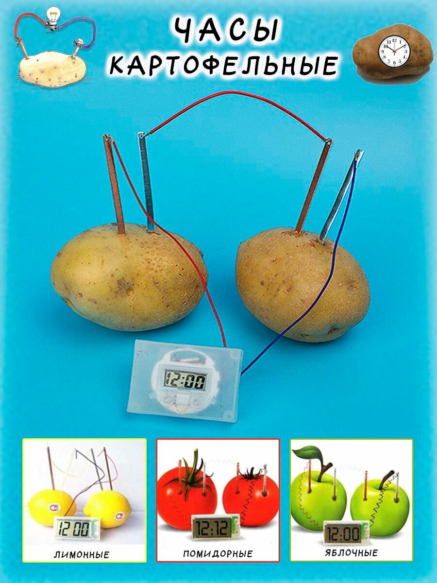 10 цен на Набор для опытов с электричеством "Картофельные часы" для детей 5-10 лет