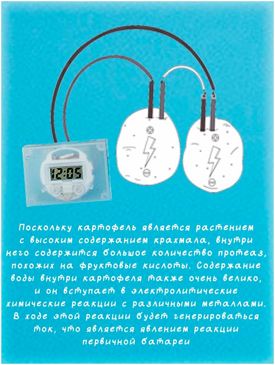 Набор для опытов с электричеством "Картофельные часы" для детей 5-10 лет информация: