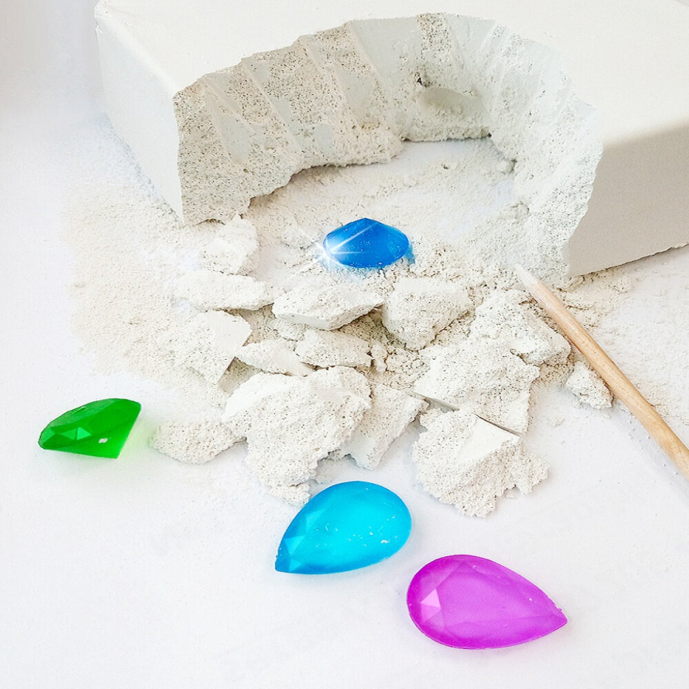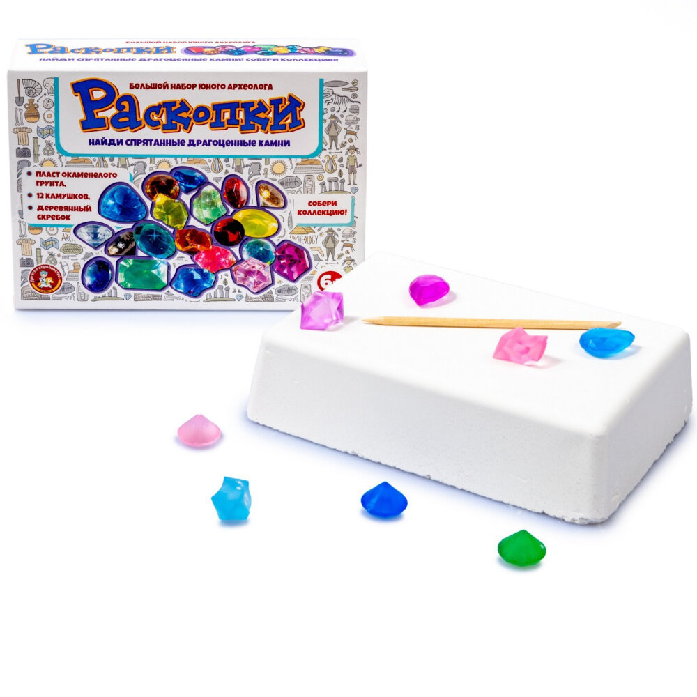 10 цен на Набор археолога раскопки кристаллов для детей 12,5 х 17,5 х 5 см гипсовая основа, деревянный скребок, 12 камней, 04609