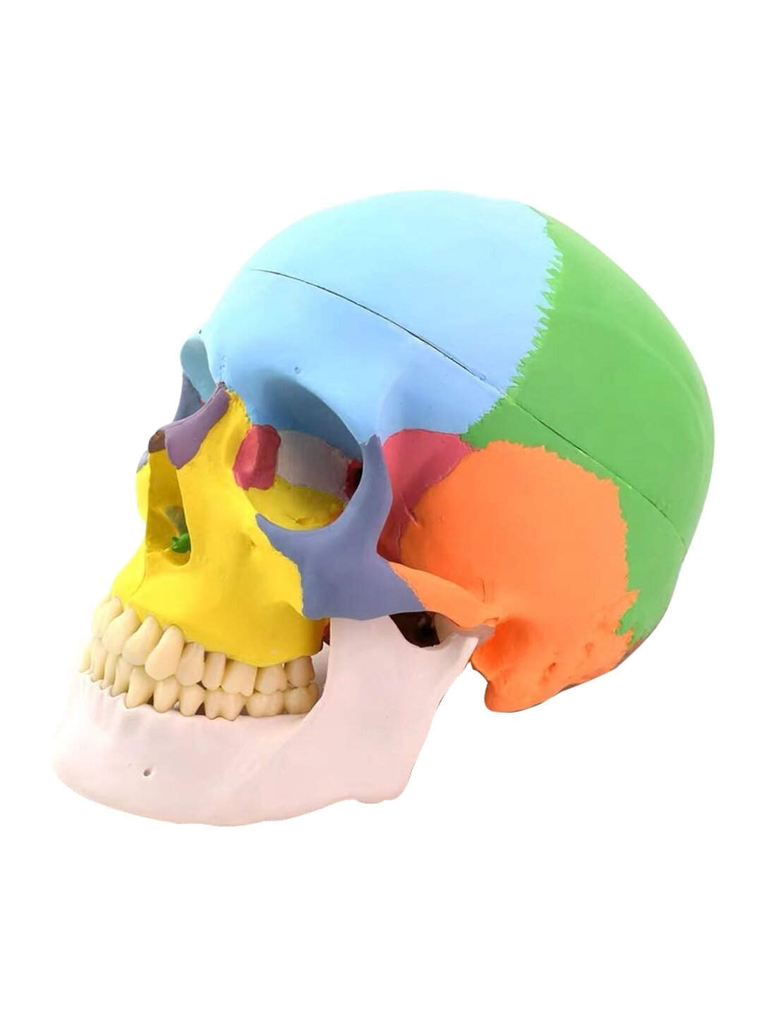 Анатомическая модель человеческого черепа 1:1 в цвете 19.5*15*21 см обозначены 22 области черепа для начинающих медиков, скульпторов, художников (У) информация:
