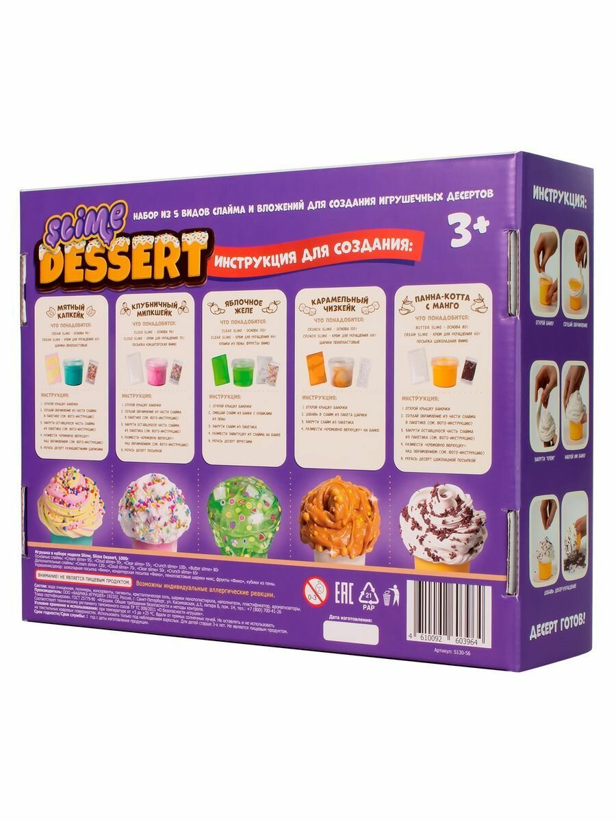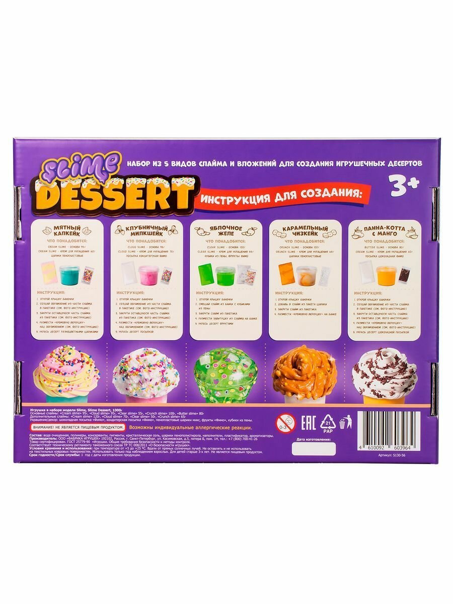 Набор для детского творчества "Slime Desserts", для девочек, кулинарные эксперименты, 5 слаймов информация: