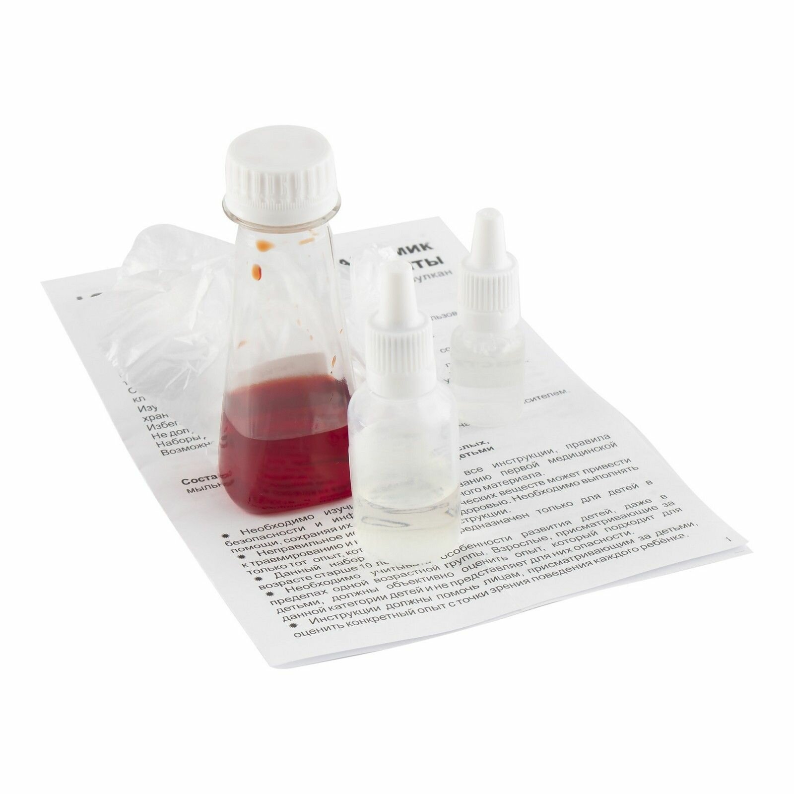 Химические опыты "Пенный вулкан. Красный", эксперименты для детей в домашних условиях, в наборе ингредиенты и инструкция информация: