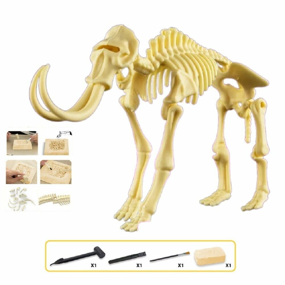 Набор для раскопок скелет мамонта, основа из гипса 10 х 14 х 3.5 см, молоток, долото и кисть информация: