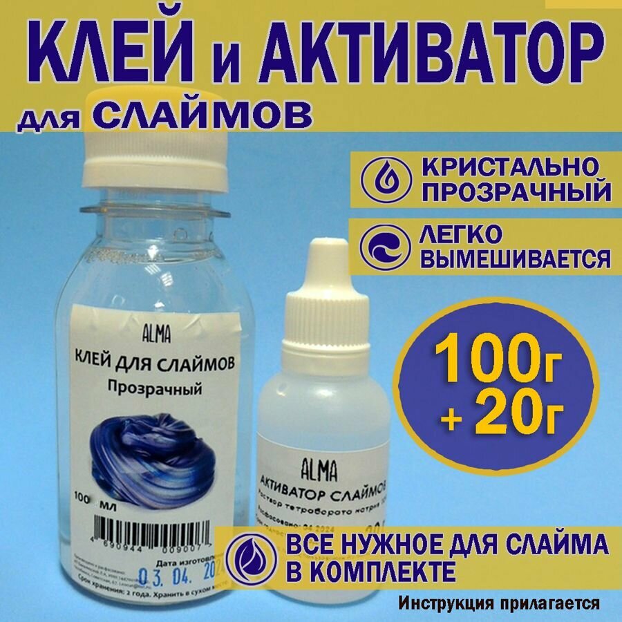Клей для слаймов ALMA прозрачный 100 г с активатором информация: