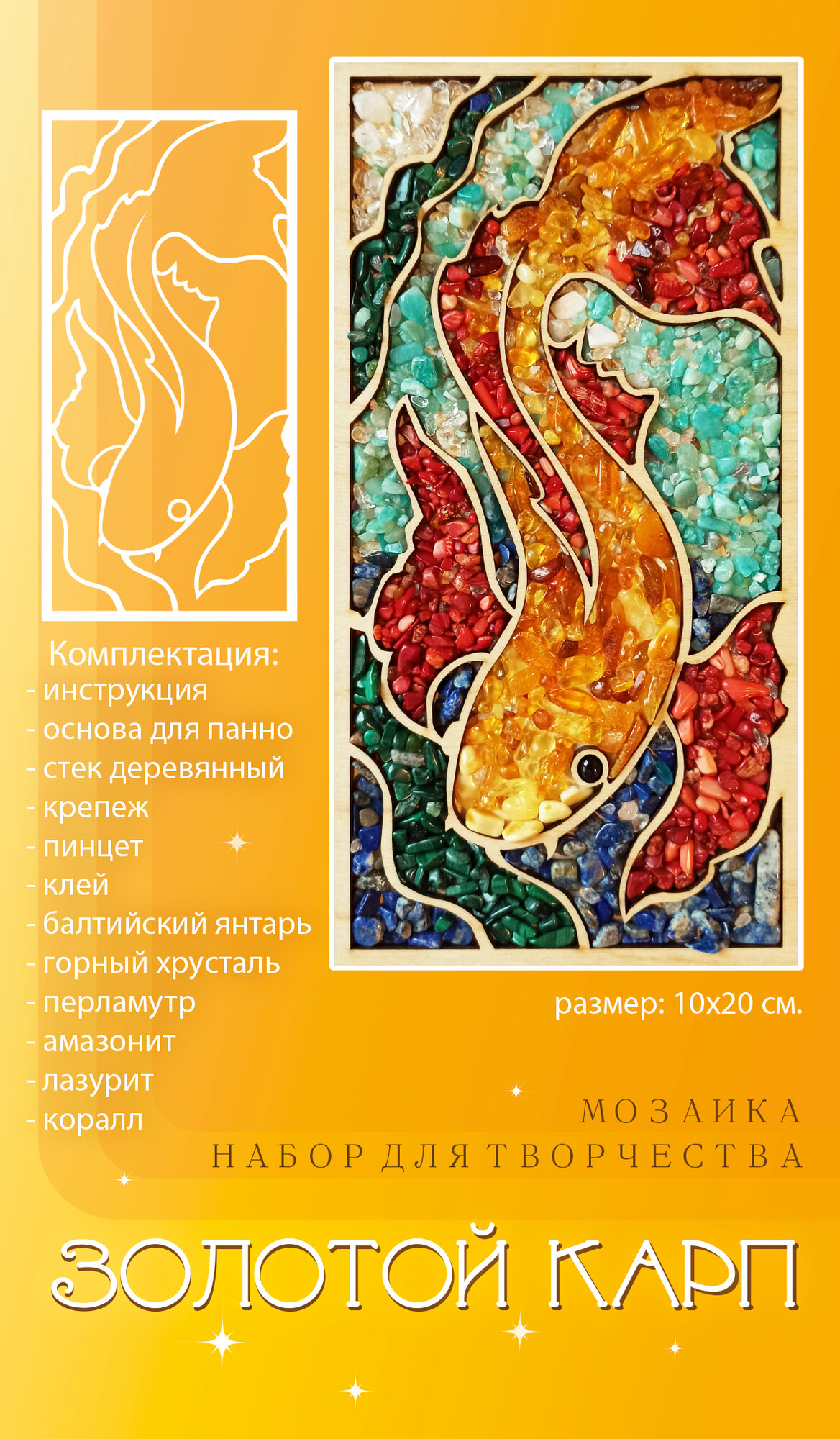 10 цен на Набор для творчества, Мозаика, "Золотой Карп" 20х10 см. янтарь, коралл, амазонит, лазурит, горный хрусталь, перламутр