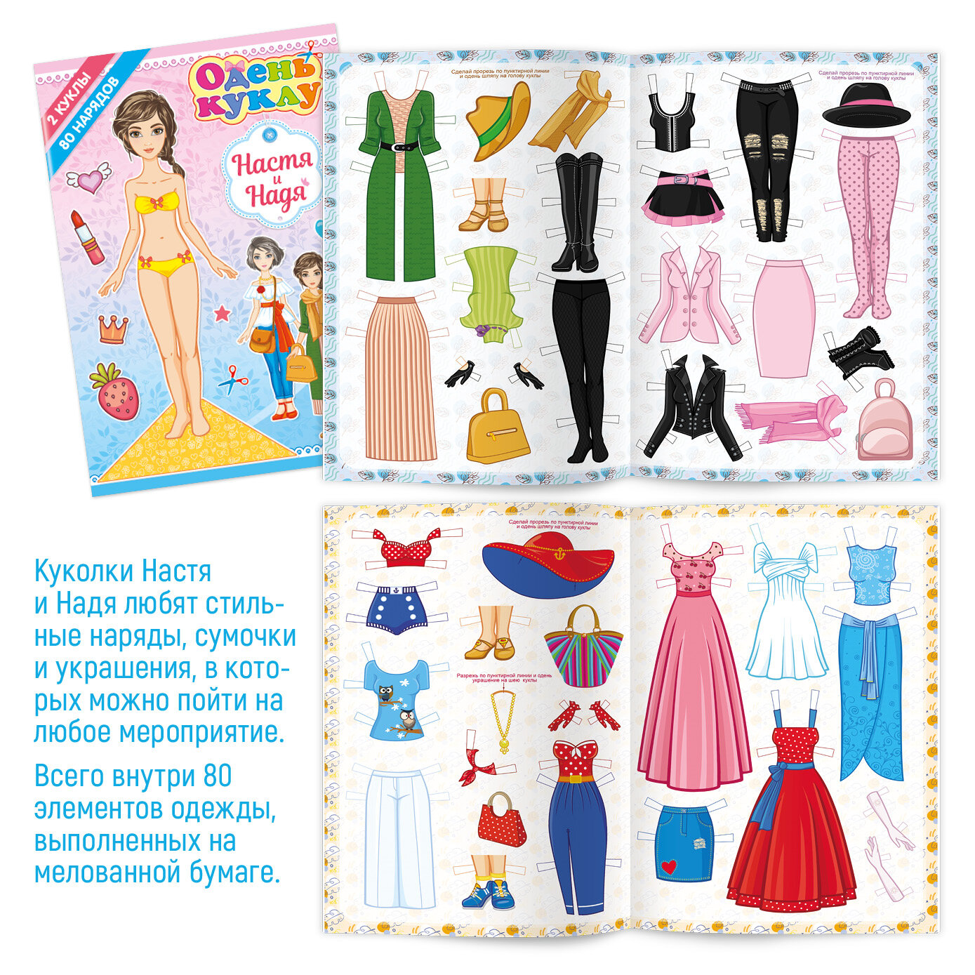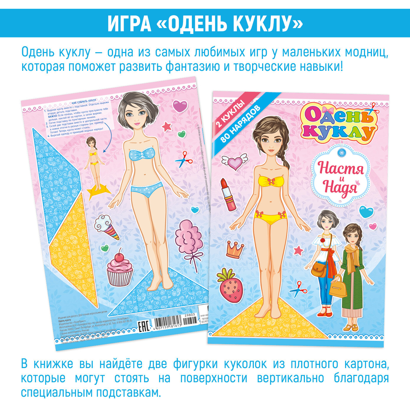 Игра вырежи и одень куклу из бумаги. 2 девочки, 80 элементов одежды информация: