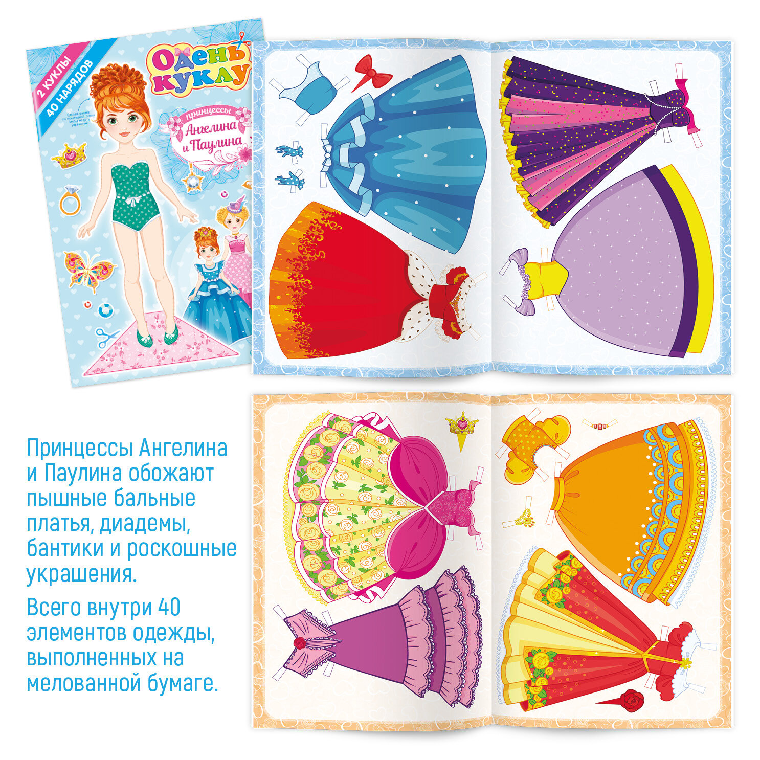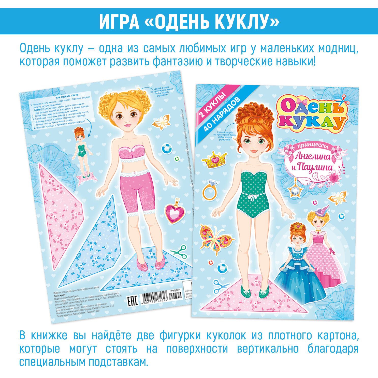 Игра вырежи и одень куклу из бумаги. 2 девочки, 40 элементов одежды информация: