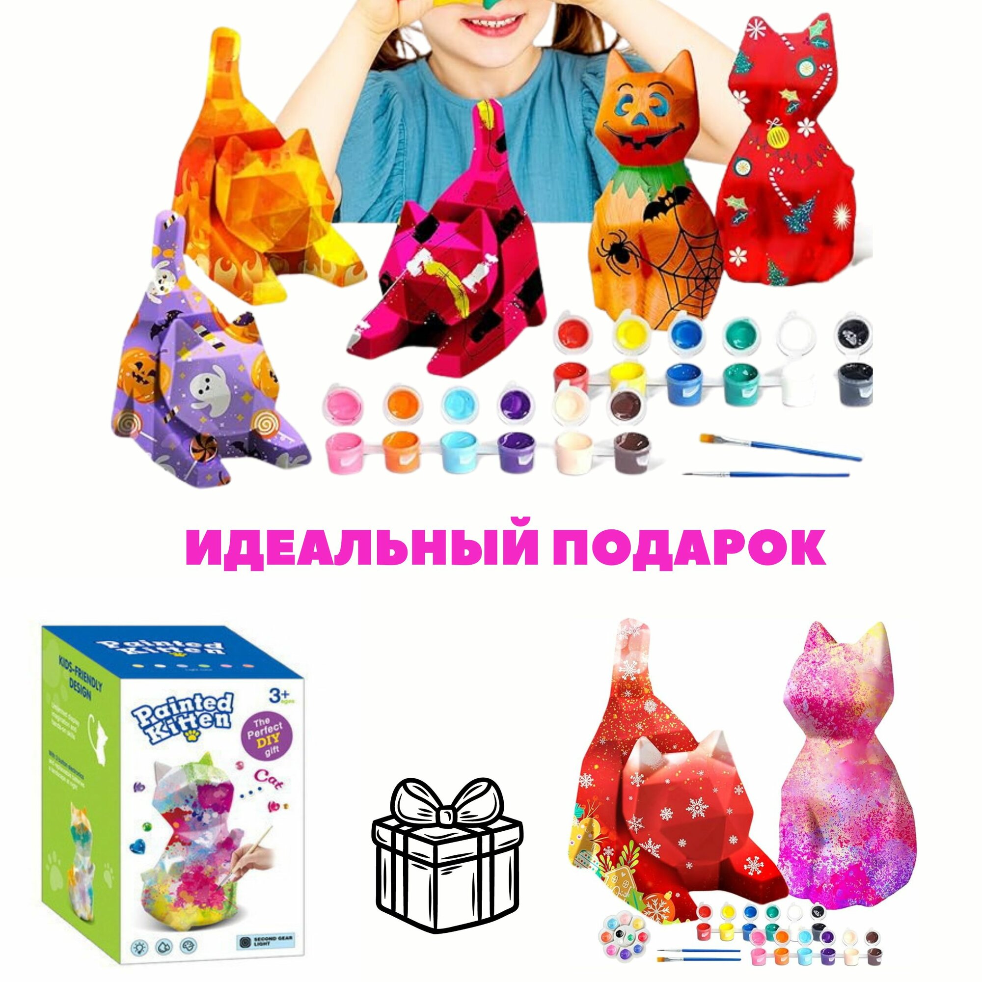 10 цен на Набор для творчества и рисования раскраска ночник светильник котик