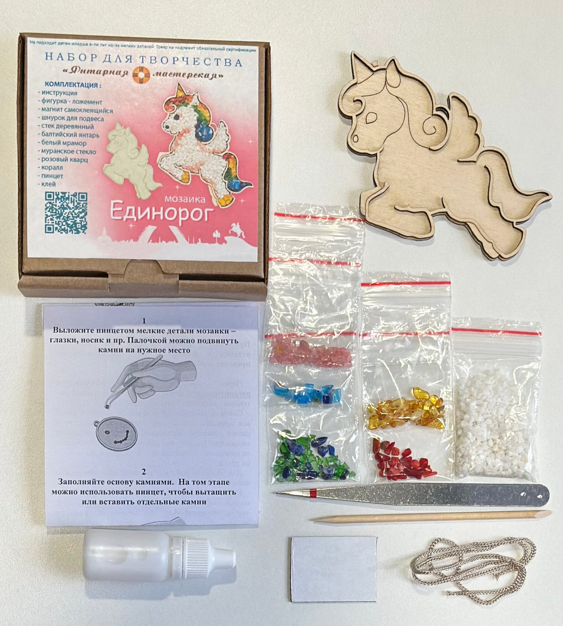 10 цен на Набор для творчества, мозаика "Единорог " балтийский янтарь, белый мрамор, муранское стекло, розовый кварц, коралл