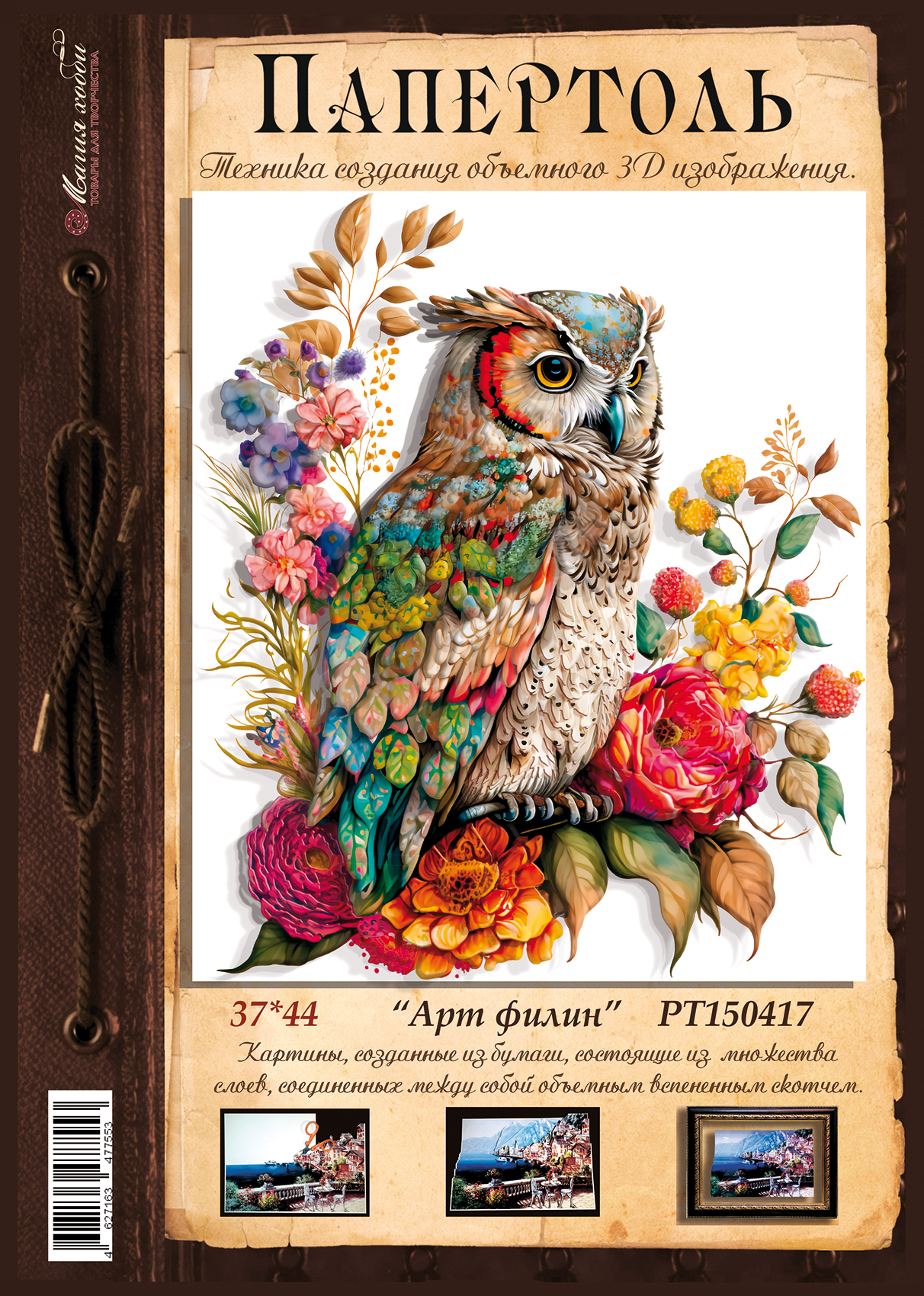 10 цен на Папертоль "Арт филин" 37х44см." - РТ150417, Магия Хобби, Карты для изготовления объемных 3D картин