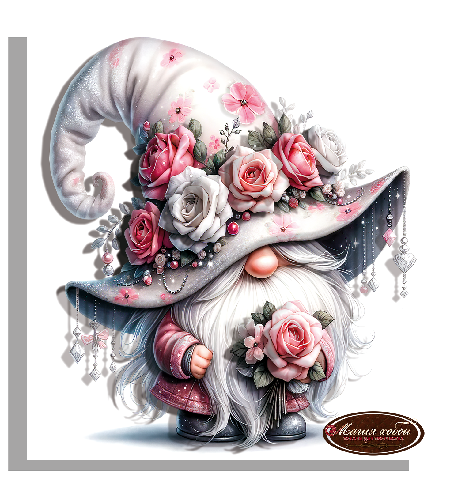 Папертоль "Гном. Цветы. В розовом" 15х16см." - РТ150446, Магия Хобби, Карты для изготовления объемных 3D картин информация: