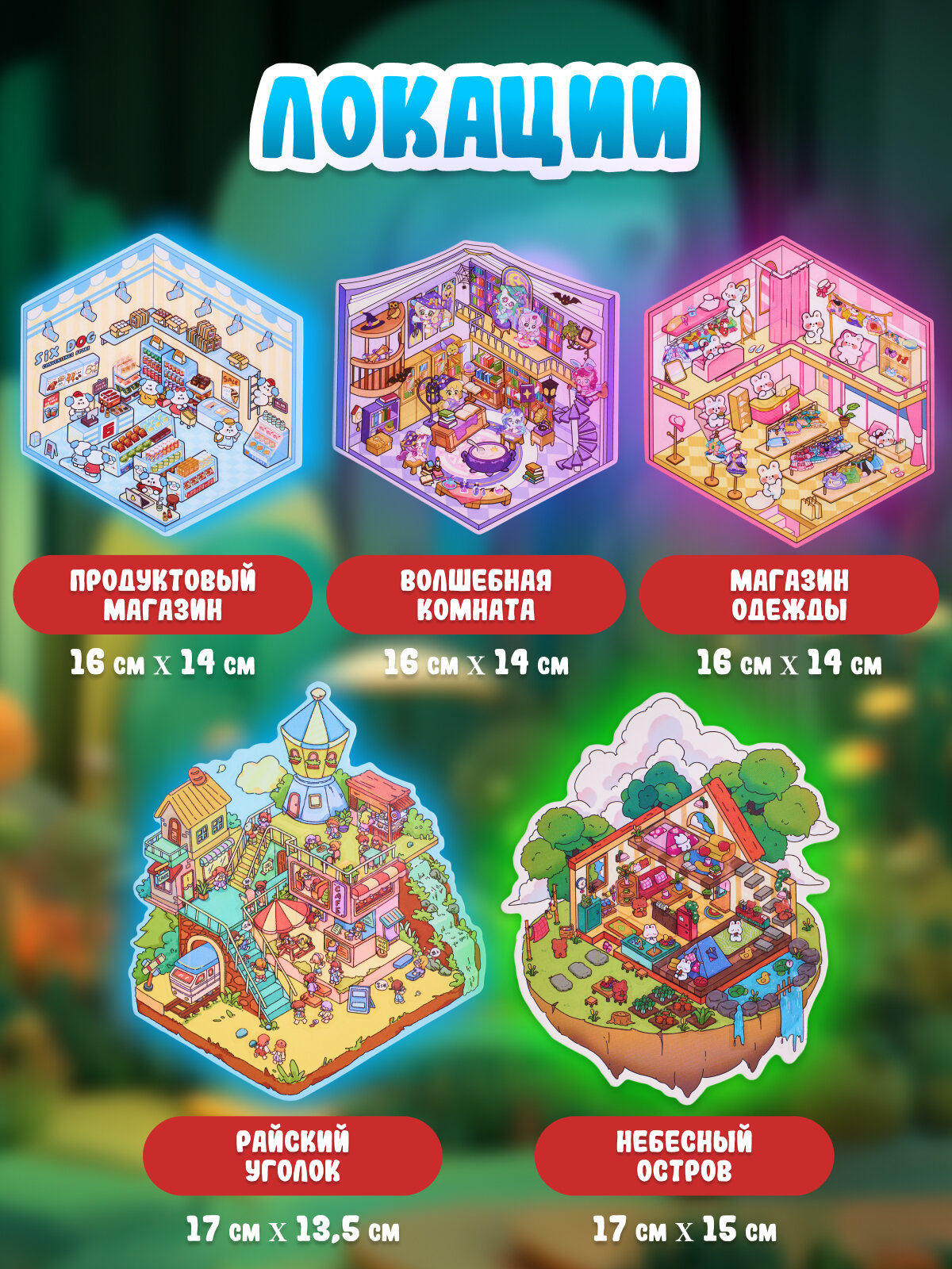 Большой набор наклеек аниме румбокс 5 локаций комнат, 4 локации с магнитами 3D эффект информация: