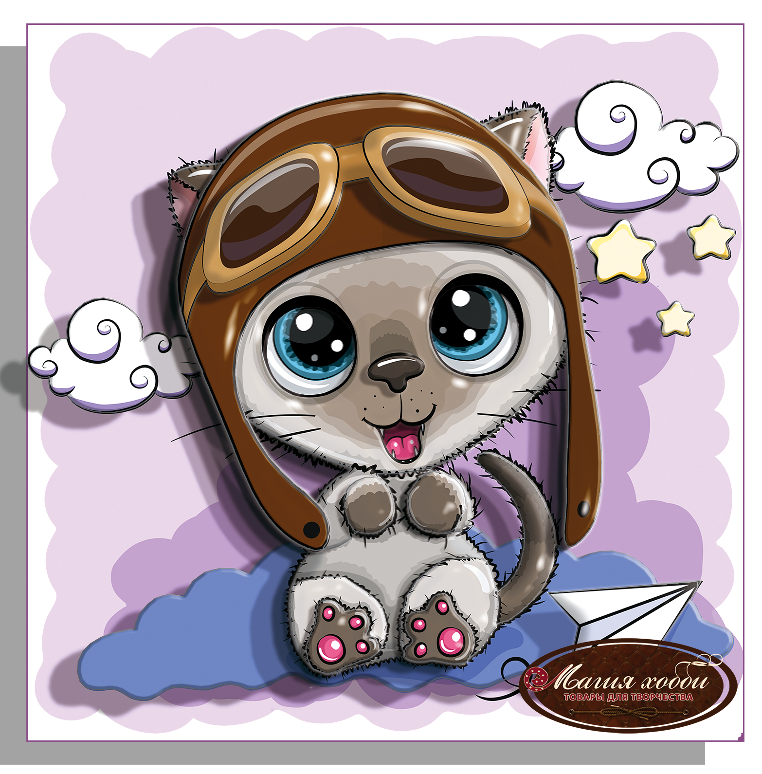 Папертоль "Кот пилот" 12*12см." - РТ150208, Магия Хобби. Карты для изготовления 3D картин, для домашнего декора информация: