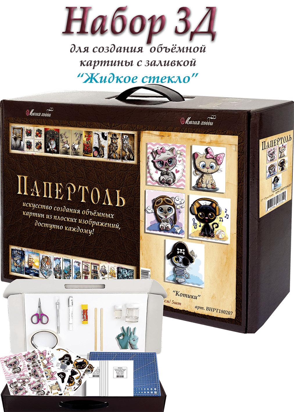 Папертоль "Котик с бантом" 10*13см." - РТ150207, Магия Хобби. Карты для изготовления 3D картин, для домашнего декора 440 ₽