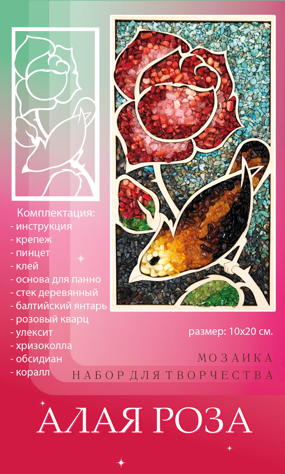 10 цен на Набор для творчества, мозаика "Алая Роза" панно 20х10 см; янтарь, коралл, улексит, розовый кварц , обсидиан, хризоколла.