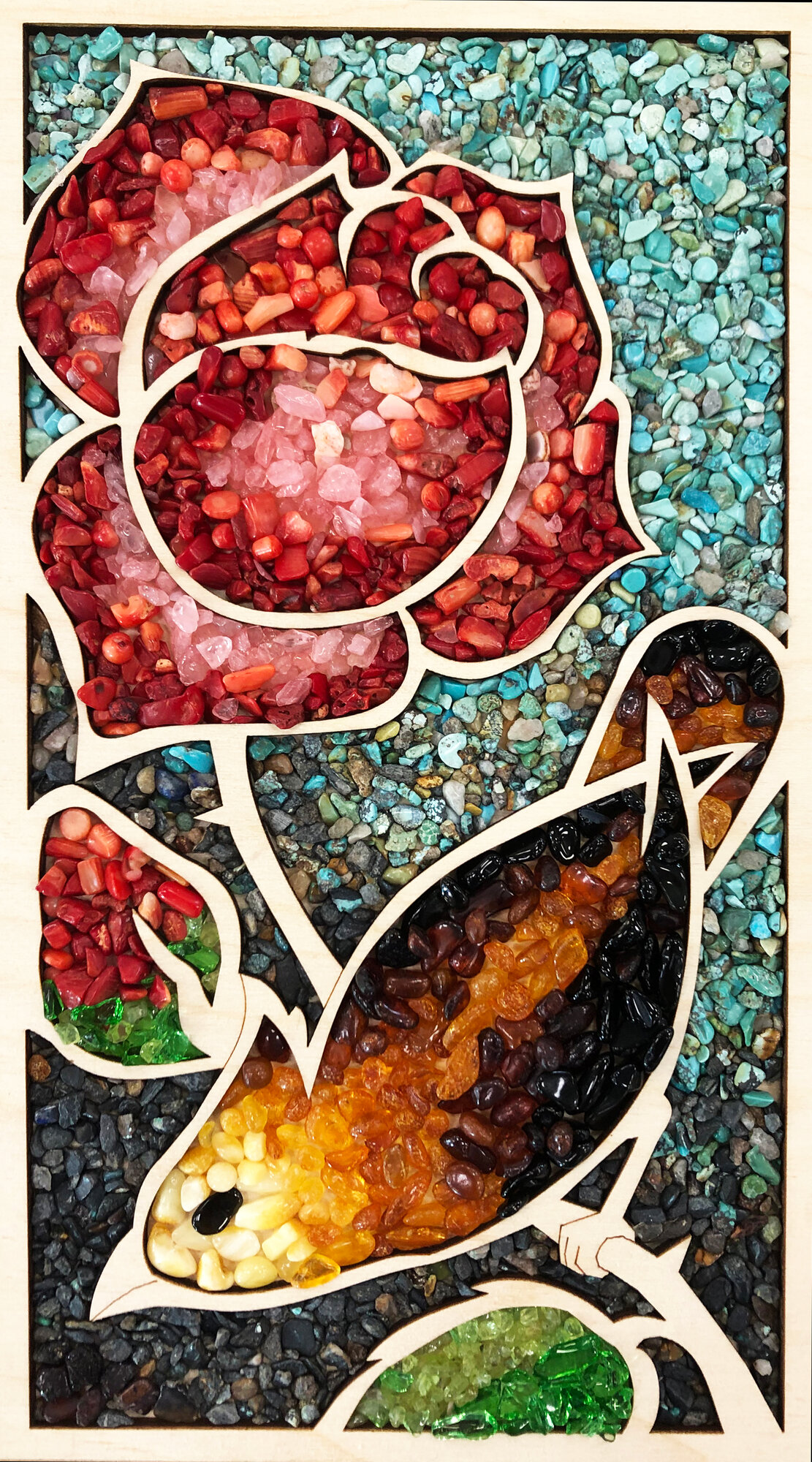 Отзывы на Набор для творчества, мозаика "Алая Роза" панно 20х10 см; янтарь, коралл, улексит, розовый кварц , обсидиан, хризоколла.