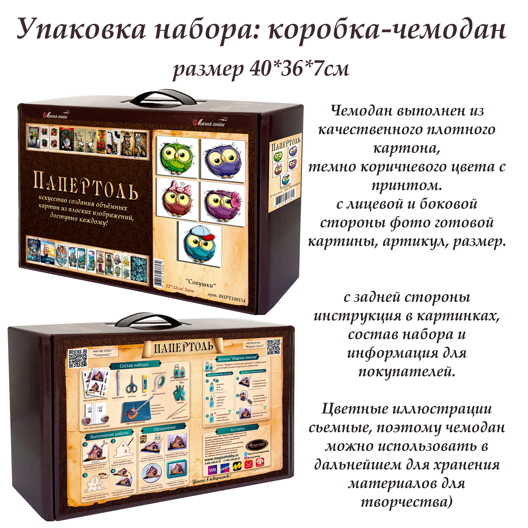 10 цен на Набор папертоль "Совушки" -ВНРТ180154 Магия Хобби, для творчества, создание объемной 3D картины.