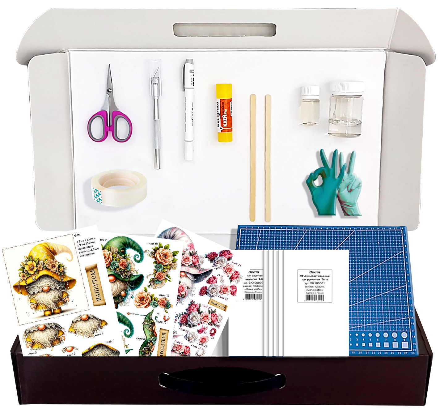 10 цен на Набор папертоль "Гномы цветы" с жидким стеклом Магия Хобби, для создания объемной 3D картины