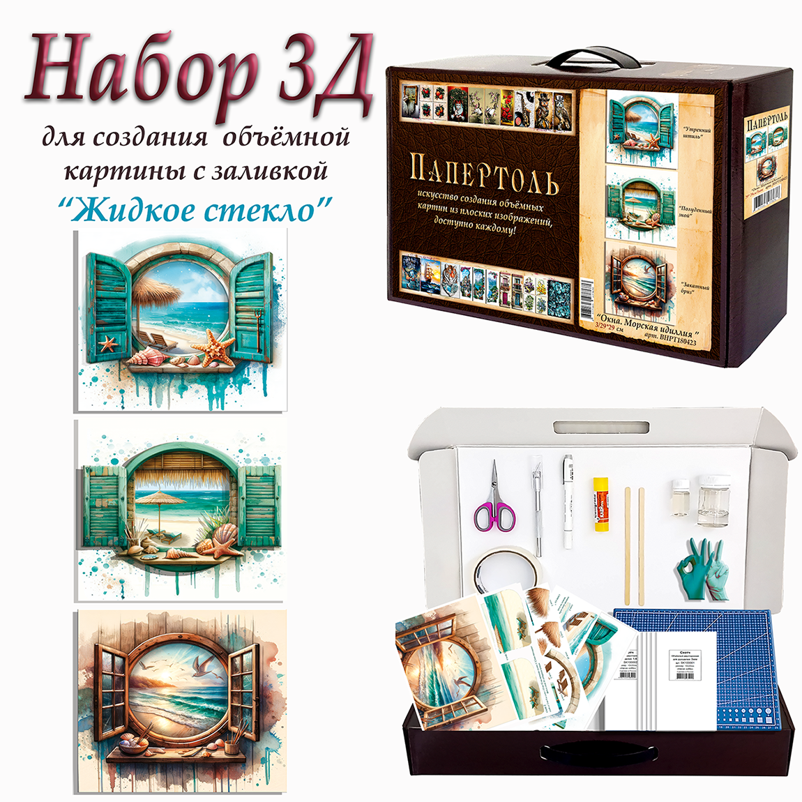 Набор папертоль "Окна. Морская идиллия" с жидким стеклом Магия Хобби, для создания объемной 3D картины информация: