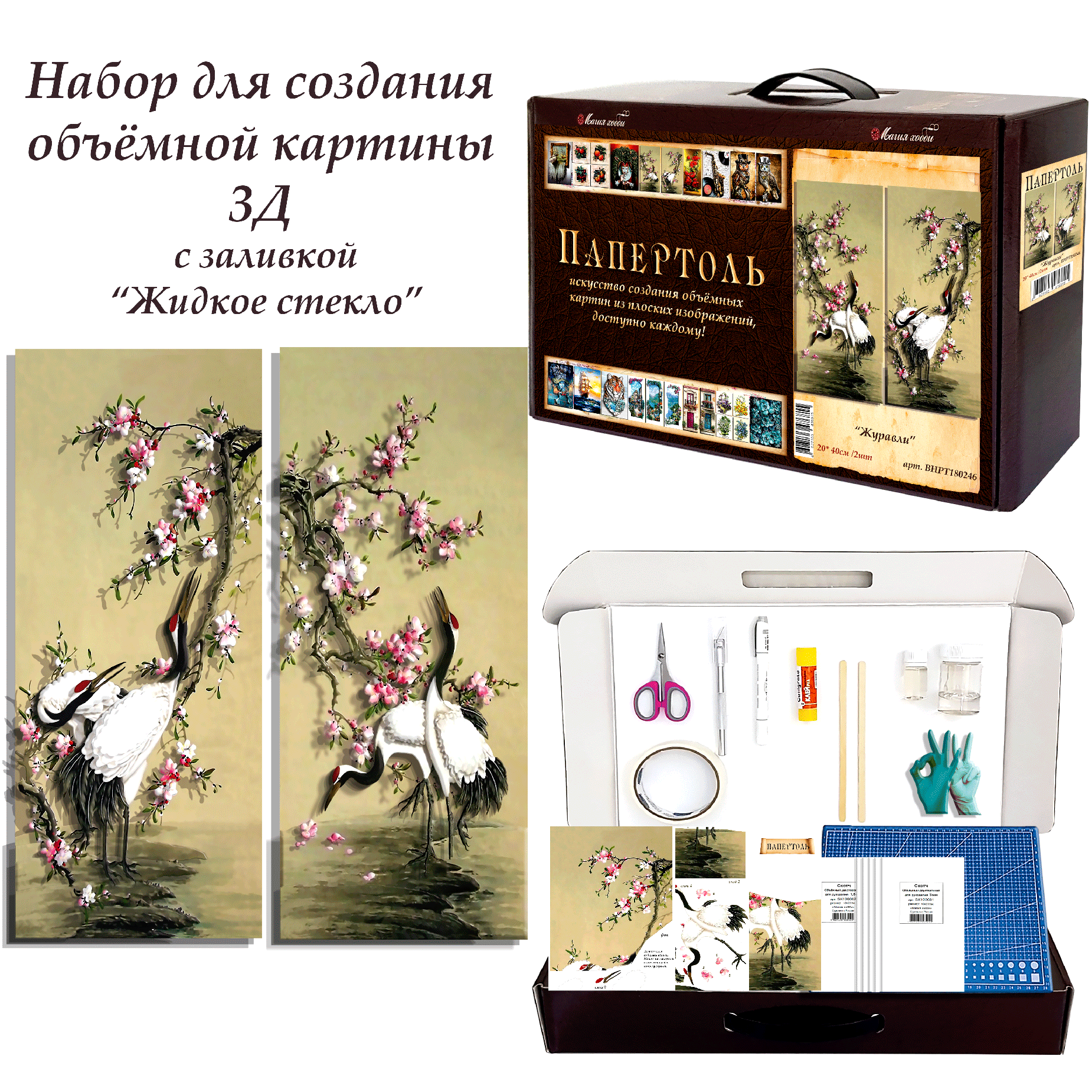 10 цен на Набор папертоль "Журавли" -ВНРТ180246, Магия Хобби, для творчества, создание 3D картины, для домашнего декора