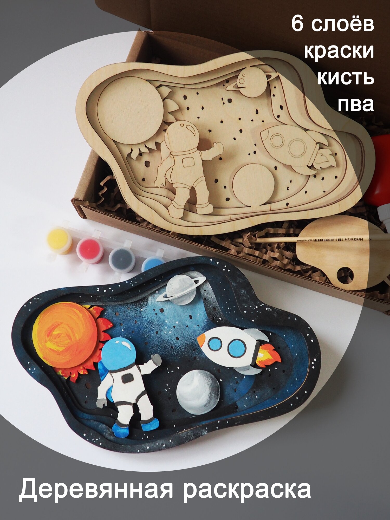 Отзывы на Набор для творчества детский из дерева сборный "Космос" 3D раскраска для мальчиков и девочек, объемная раскраска