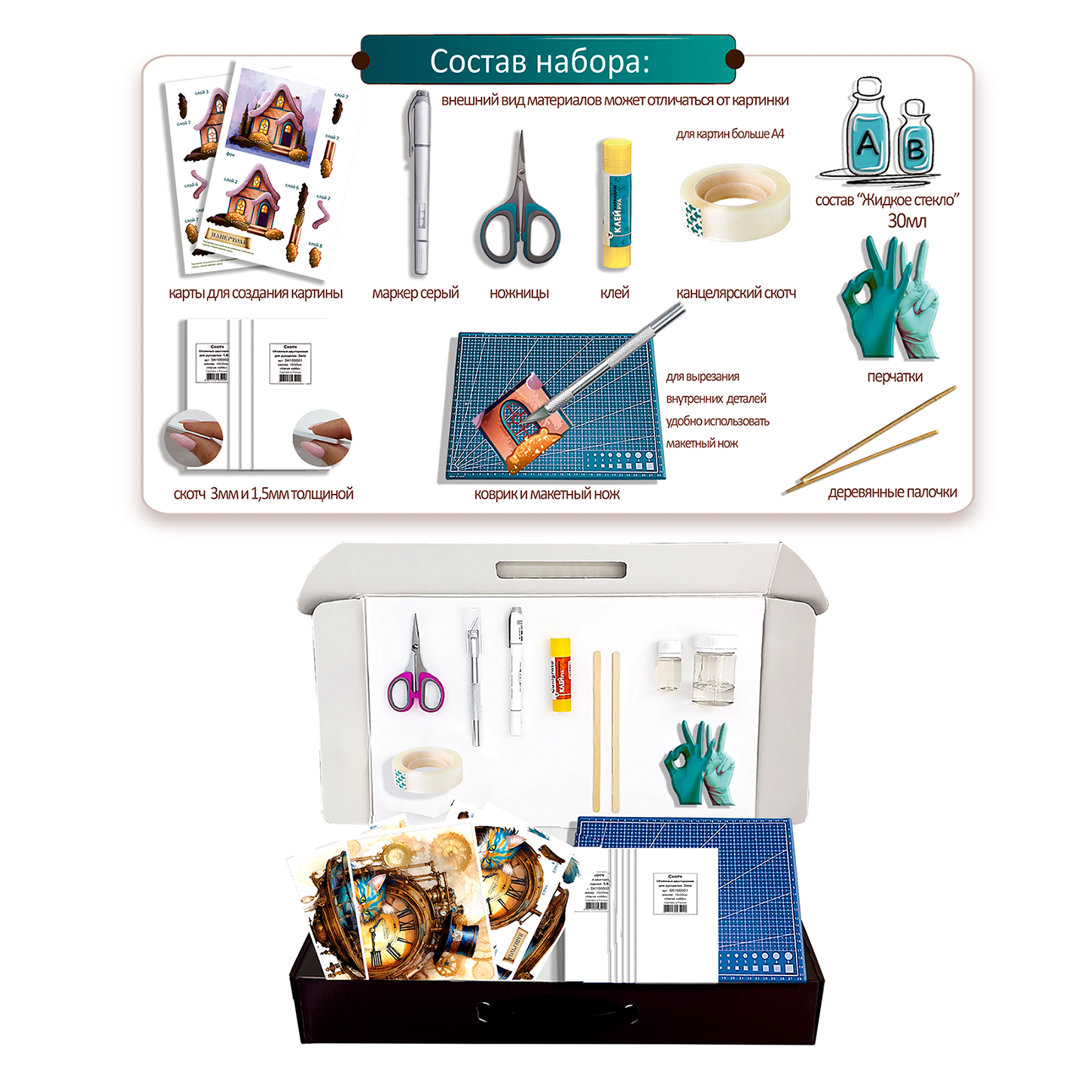 10 цен на Набор папертоль "Исчезающий кот и время" с жидким стеклом Магия Хобби, для создания объемной 3D картины