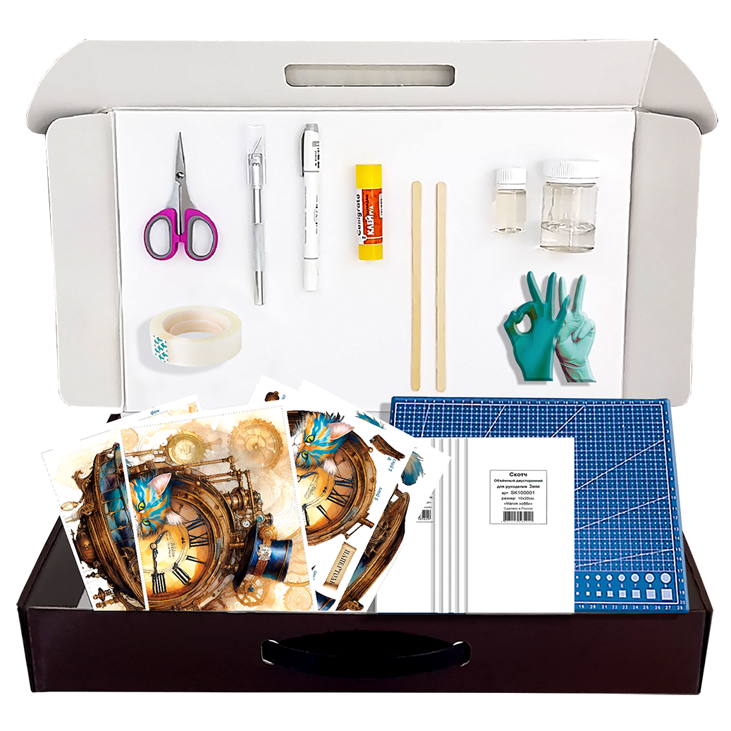 Набор папертоль "Исчезающий кот и время" с жидким стеклом Магия Хобби, для создания объемной 3D картины информация:
