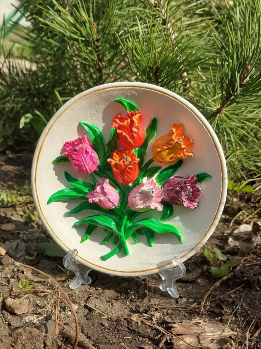 10 цен на Творческий набор для росписи гипсовый барельеф цветы тюльпаны