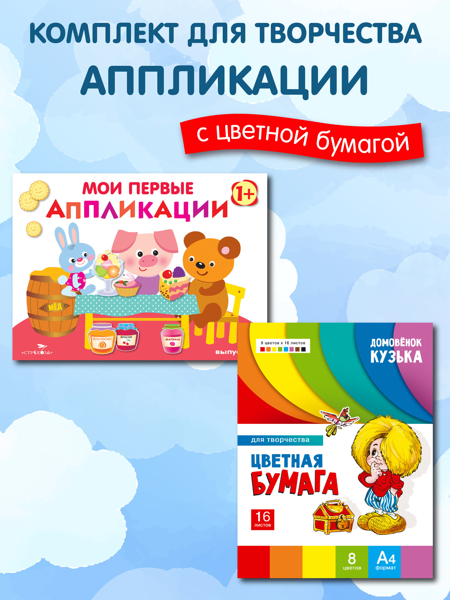 10 цен на Комплект для творчества 1+/ Аппликации и цветная бумага Домовёнок Кузька. Выпуск 4