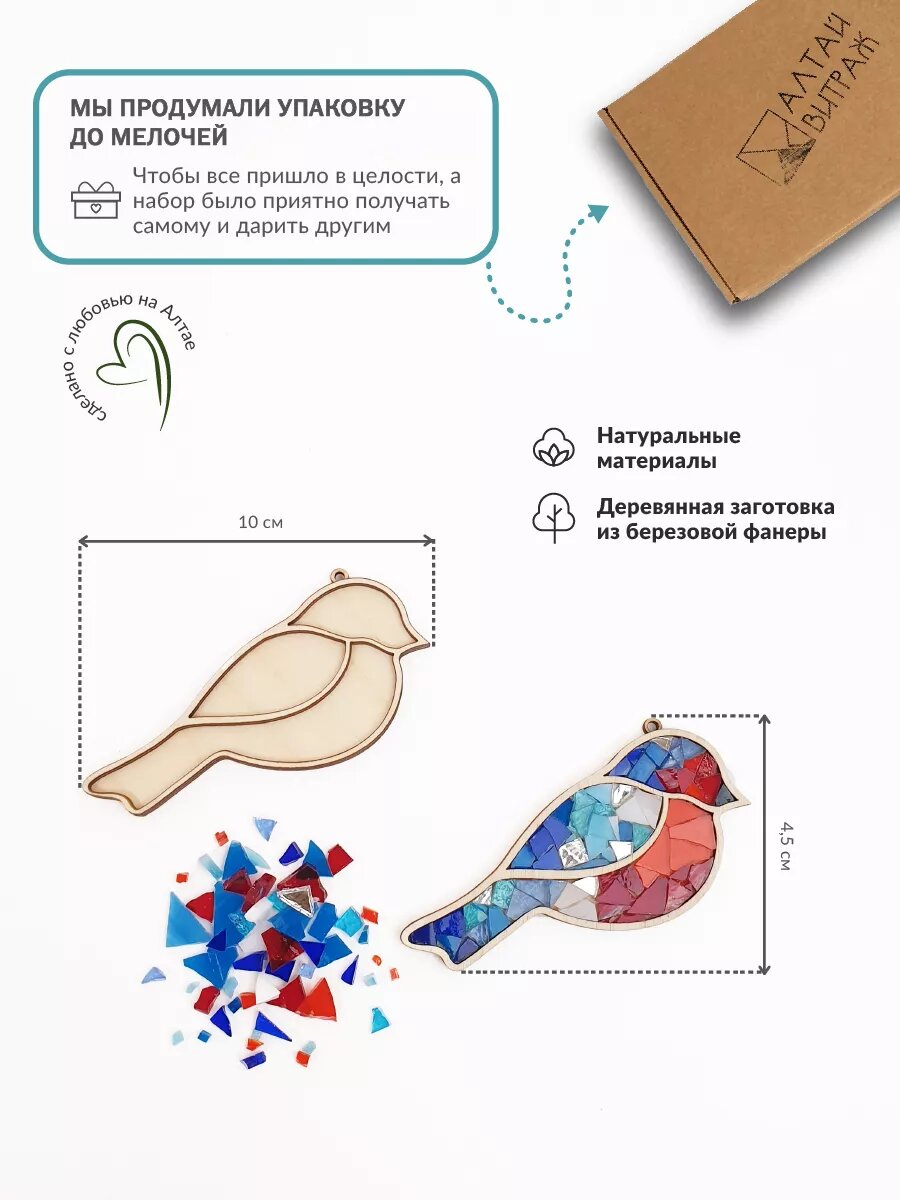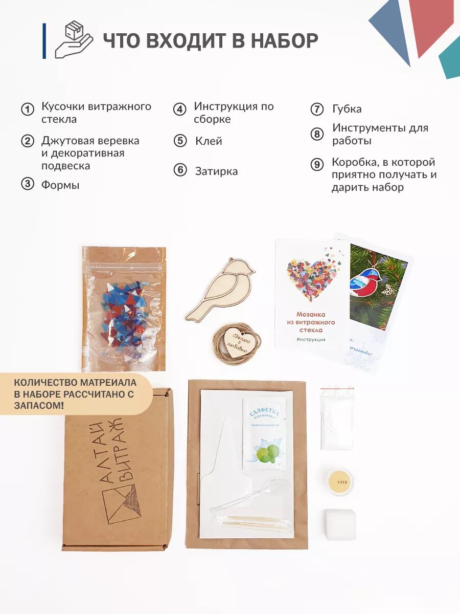 Набор для творчества мозаика стеклянная Снегирь 10 см. информация: