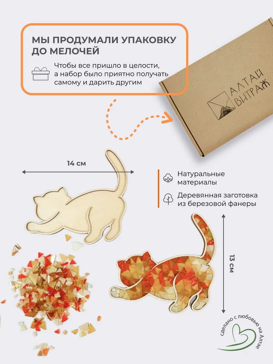 Набор для творчества мозаика стеклянная Котенок рыжий 14 см информация: