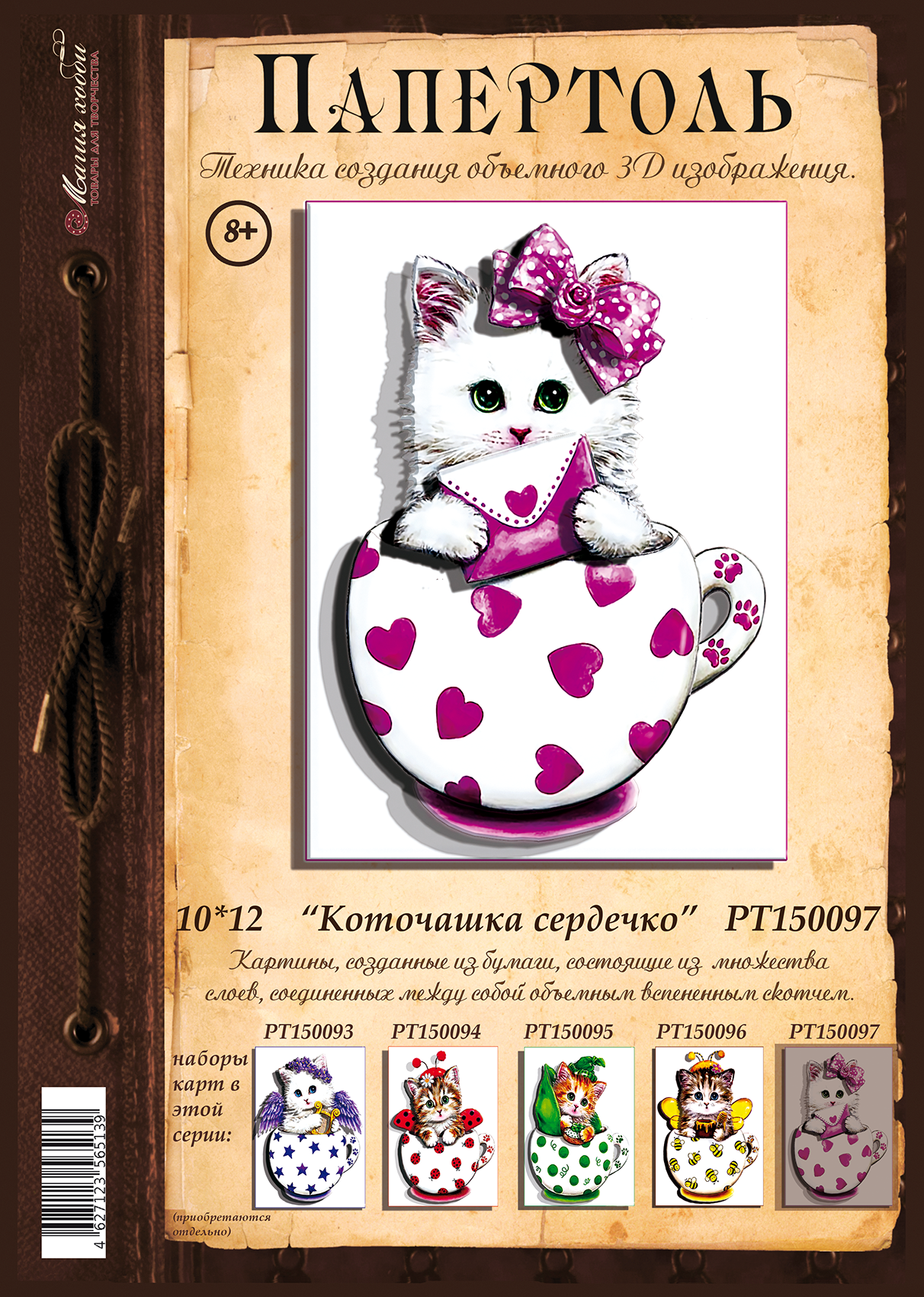 10 цен на Папертоль "Коточашка сердечко " 10*12см." - РТ150097, Магия Хобби. Карты для изготовления 3D картин, для домашнего декора