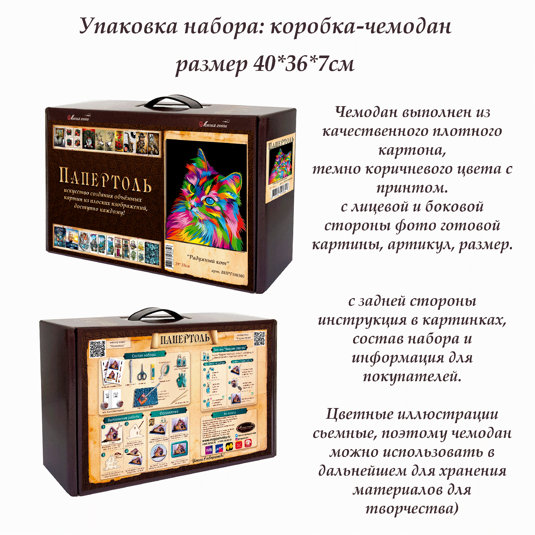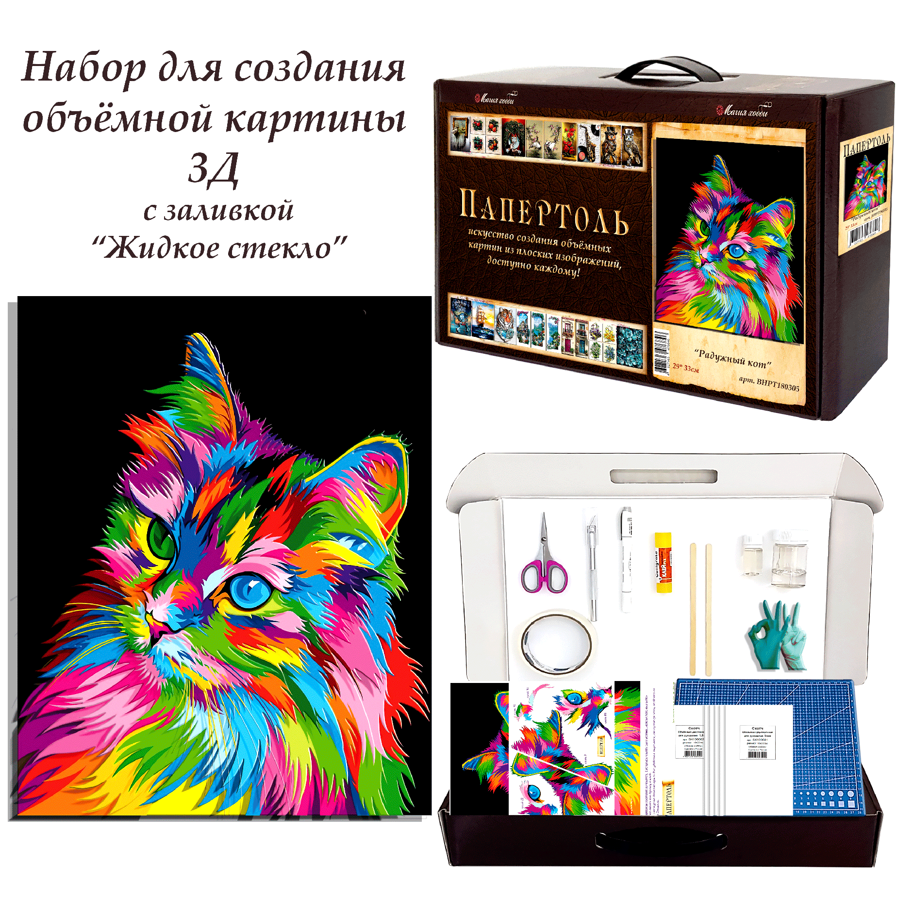 Набор папертоль "Радужный кот" -ВНРТ180305, Магия Хобби, для творчества, создание 3D картины, для домашнего декора информация: