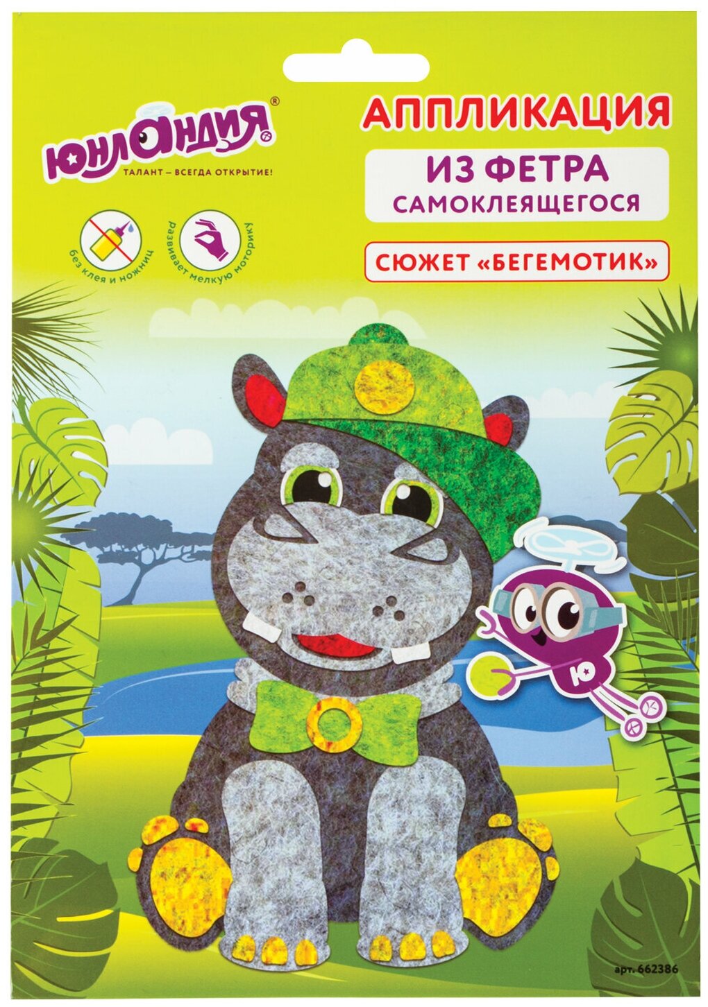 Набор для творчества Аппликация из фетра, Бегемотик, основа 20х15 см, Юнландия, 662386 информация: