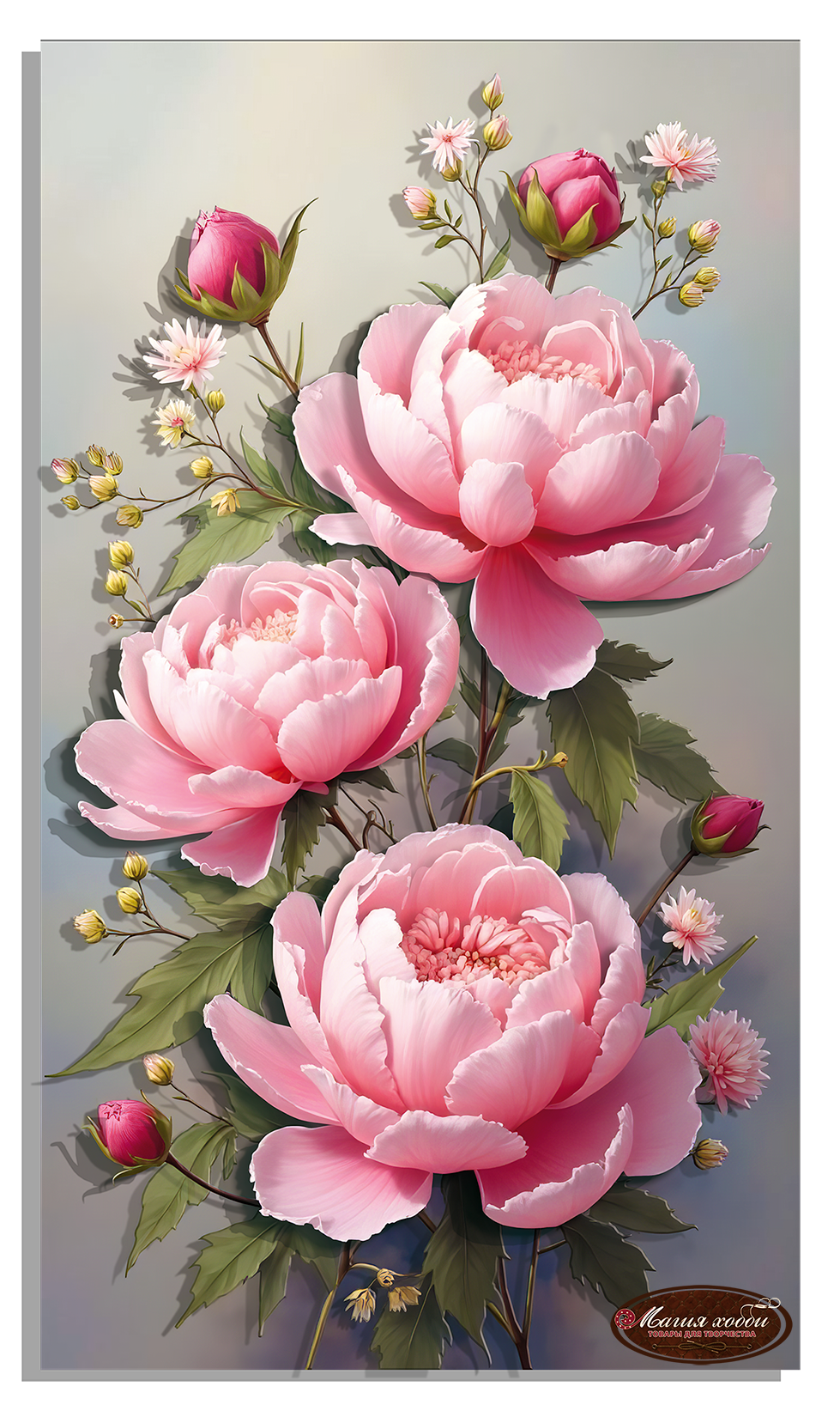 Папертоль "Пионы Алерти" 28*49см." - РТ150449, Магия Хобби. Карты для изготовления 3D картин, для домашнего декора информация: