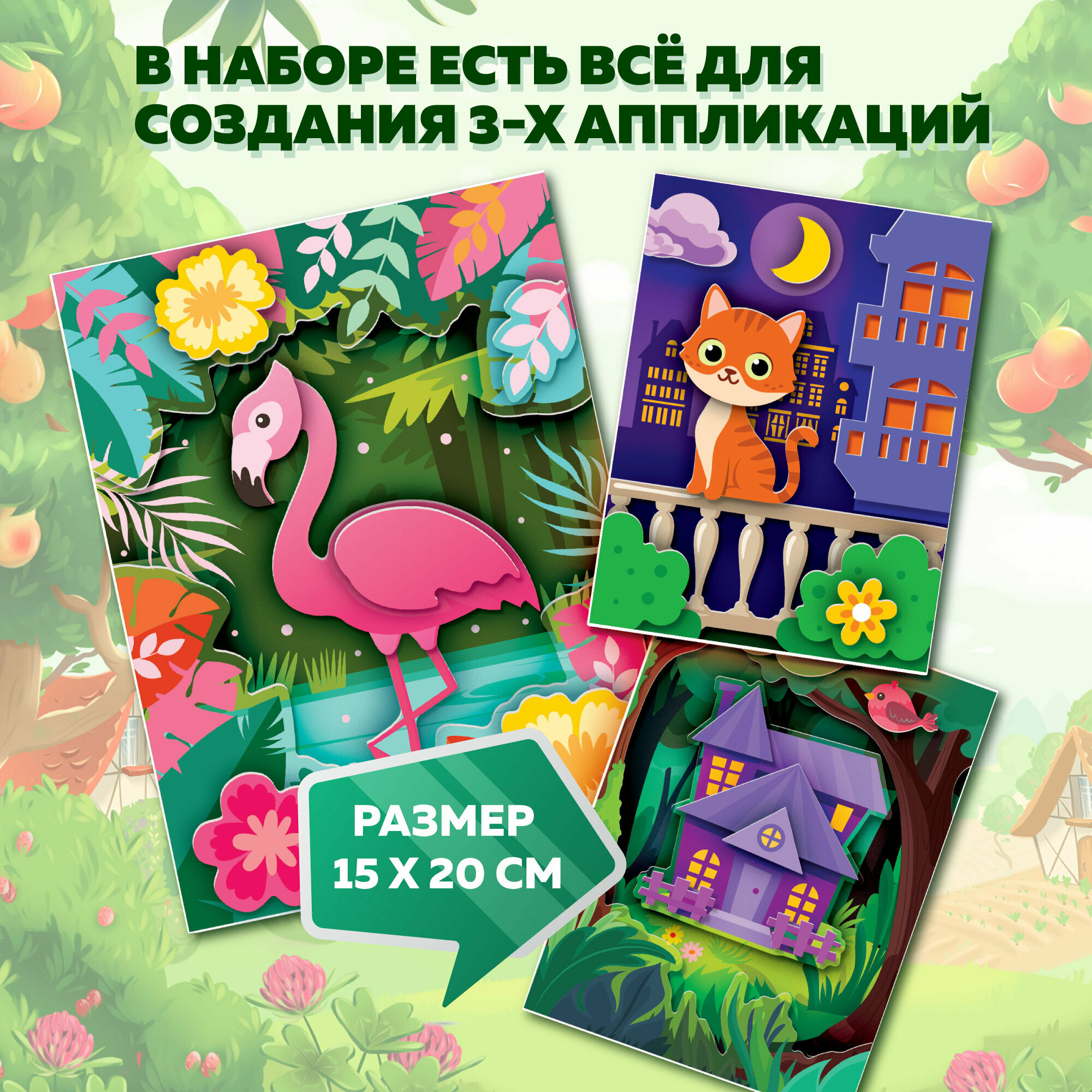 3Д аппликация. Котёнок. Домик. Фламинго информация: