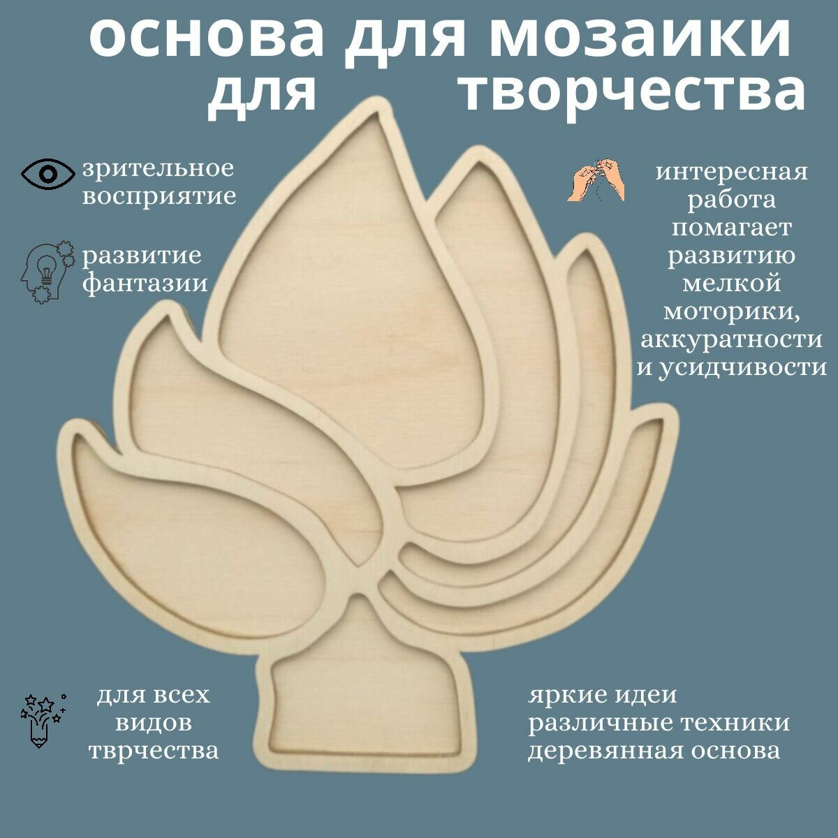 Заготовка для мозаики "ЛОТОС", деревянная, шлифованная, 21x15 см 420 ₽