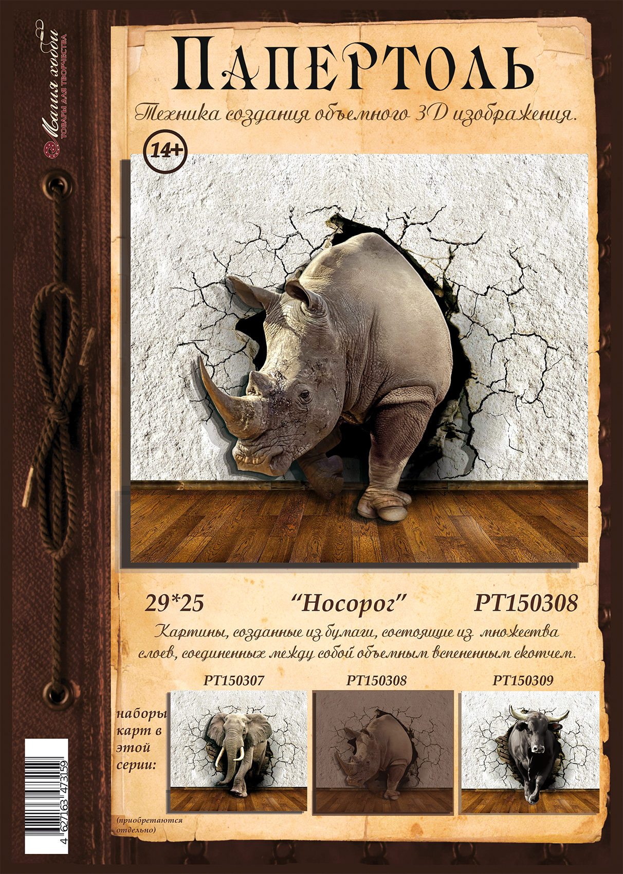 10 цен на Папертоль "Носорог" 29*25см." - РТ150308, Магия Хобби. Карты для изготовления 3D картин, для домашнего декора